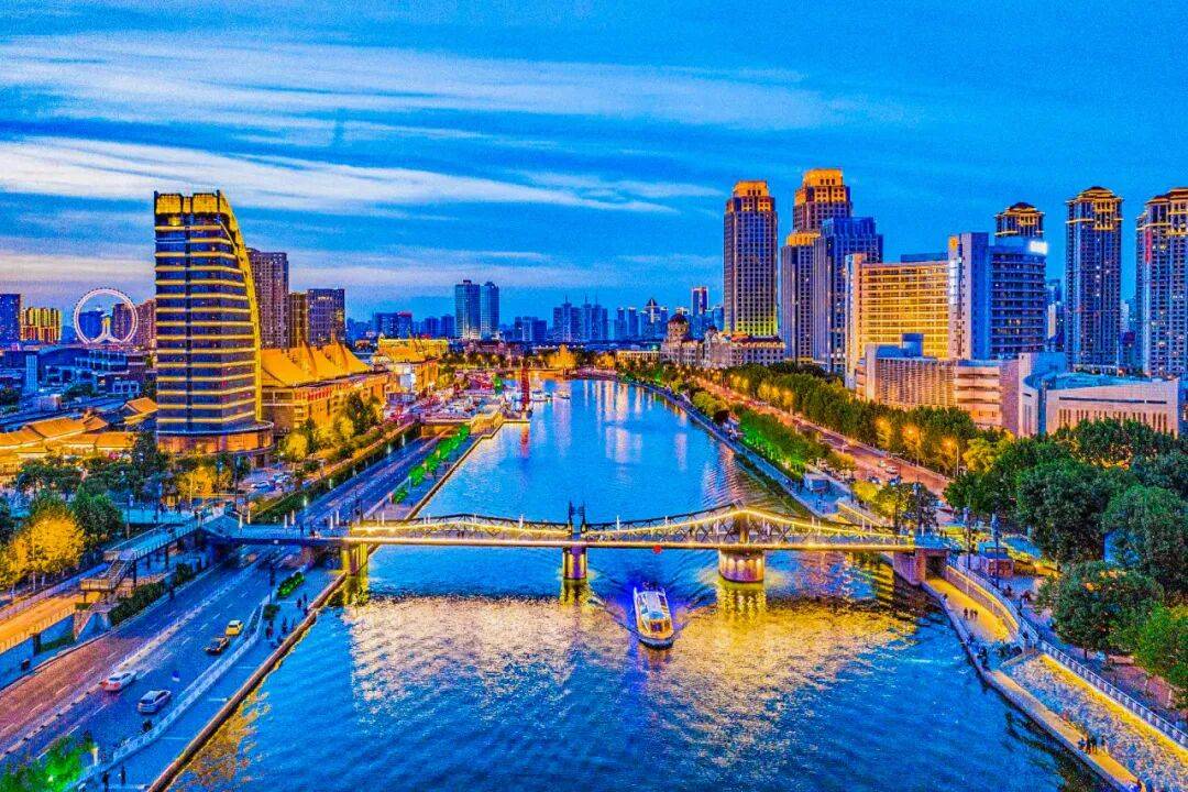 以海河沿岸的217栋建筑、14座桥梁、8.2公里的岸线和友谊路全段主干路网为核心,构建起“海河为横、友谊路为纵”的“T字轴”城市夜景体系