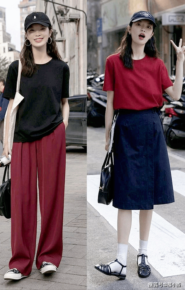 此外,亮色系T恤是夏季的另一大亮点。适当的亮色可以让肤色看起来更加白皙,吸引眼球。如果你喜欢更有冲击力的视觉效果,不妨尝试撞色搭配,深色与亮色相结合,营造出更强烈的视觉冲击感。