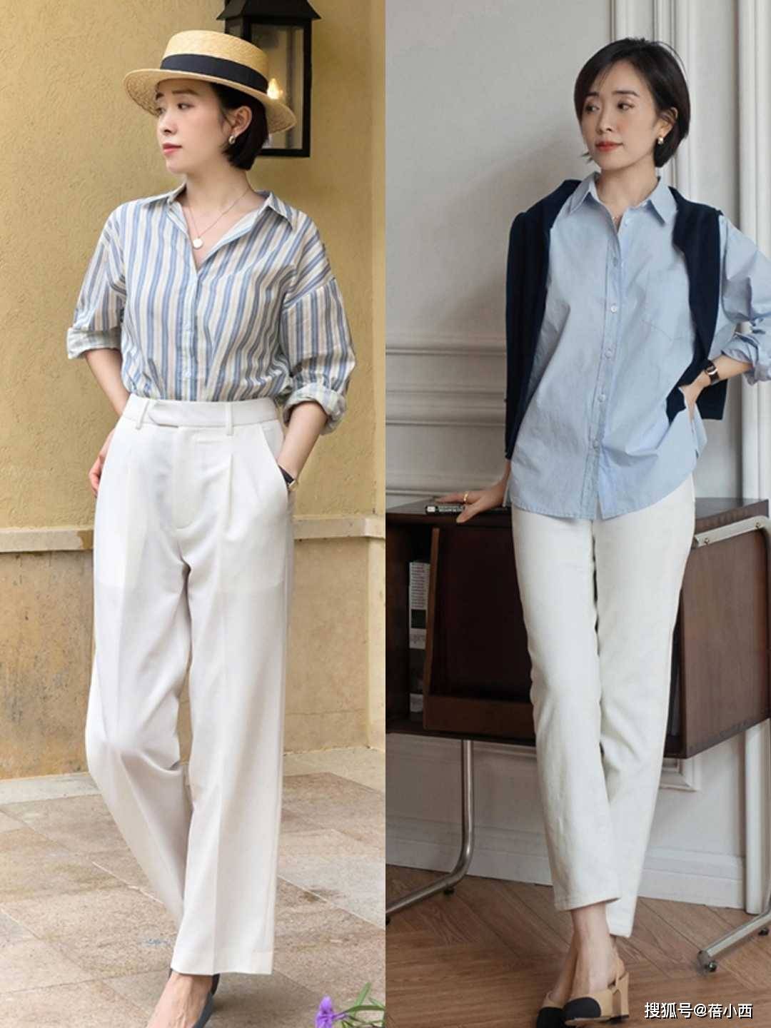 衬衫与裤子、裙装的搭配都可以展现不同的风格,尤其是当搭配一条裙子时,可以突显出女性特有的柔美与优雅,增加整体造型的魅力。