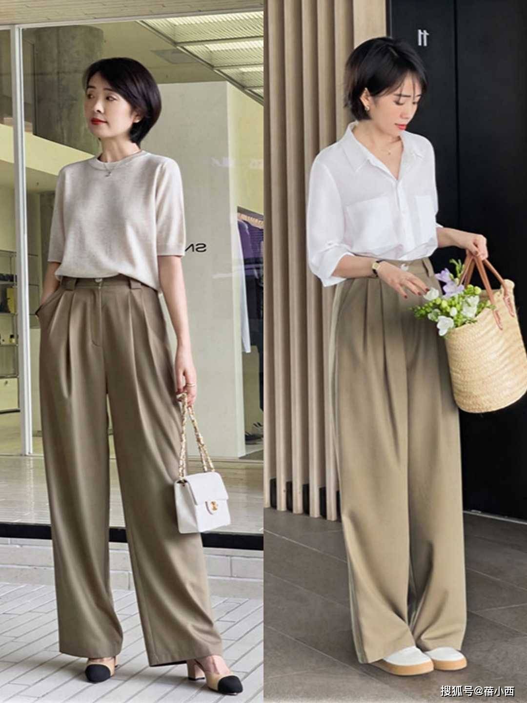 对于步入四十的女性来说,紧身裤可能并不是最佳选择,因为它对身材的要求较高,且穿着不太舒适。如果你想要展现优雅和时尚感,可以选择阔腿裤或者锥形裤,这类裤型不仅有利于修饰身形,还能提升整体的气质。阔腿裤尤其适合夏季,但需要注意避免过于厚重的材质,以免穿着显得沉闷。搭配高腰设计的阔腿裤,不仅能够拉长腿部线条,还能搭配短款上衣,展现出优雅的身材比例。