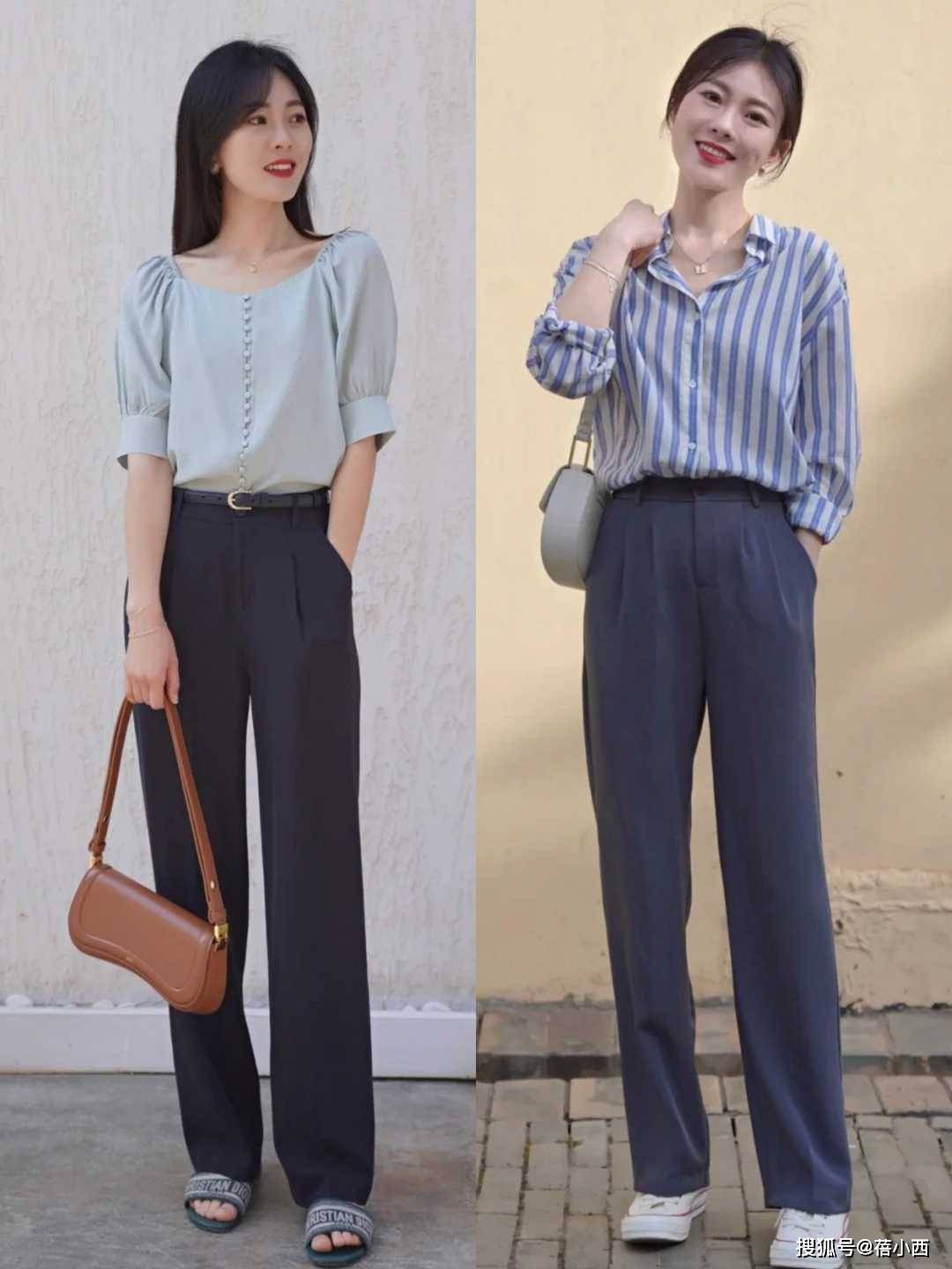 1 西装阔腿裤:挺括有垂感,低调大方,尤其适合通勤人群,轻松展现高级感。