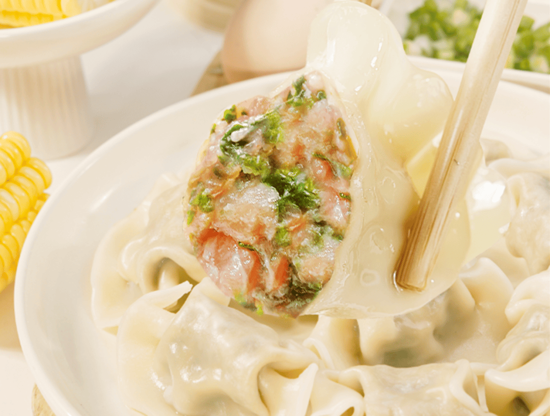除了备受喜爱的纯鲜肉肠,扬翔食品此次带来的新品板蓝根青菜鲜猪肉水饺,更是凭借独特的配方和清爽的口感,成为展会的“黑马”产品。