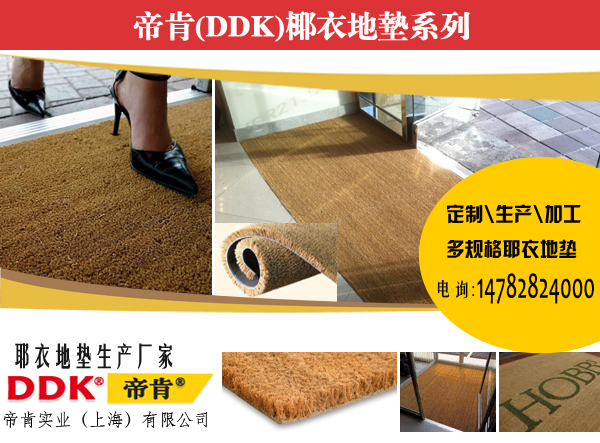 帝肯(DDK)椰衣地垫,即椰壳地垫。经典欧洲风格,天然环保,风格粗犷,形象店,连锁店门口,风格型设计师首选!帝肯(DDK)椰衣地垫选用上乘的天然植物纤维原料(天然椰棕),毯面纱线纯手工捻制而成,是崇尚自然环保者的首选;产品结实耐用,脚感厚实,功能强大,是一款难得的结合环保理念