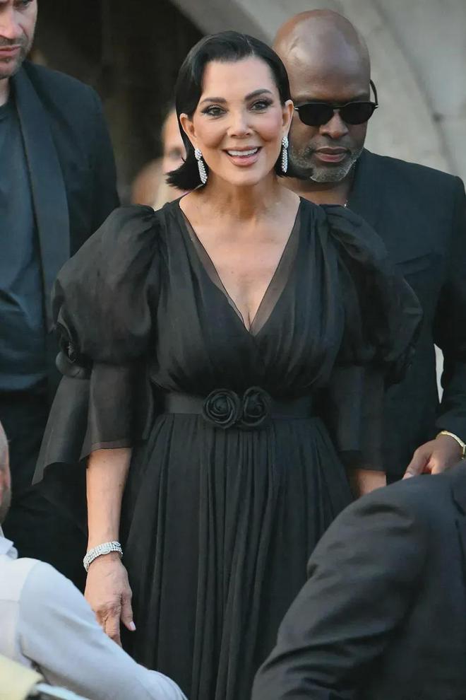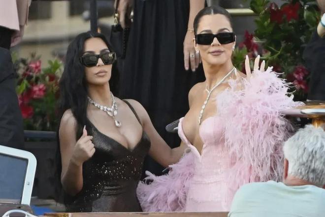 最夸张,或者说最会搞事情的还是卡戴珊家族。她们一身珠宝光气,真的很抢新娘子的风头。跟桑切斯“简朴”的两枚大钻戒相比,卡戴珊家族的珠宝真的很豪气。