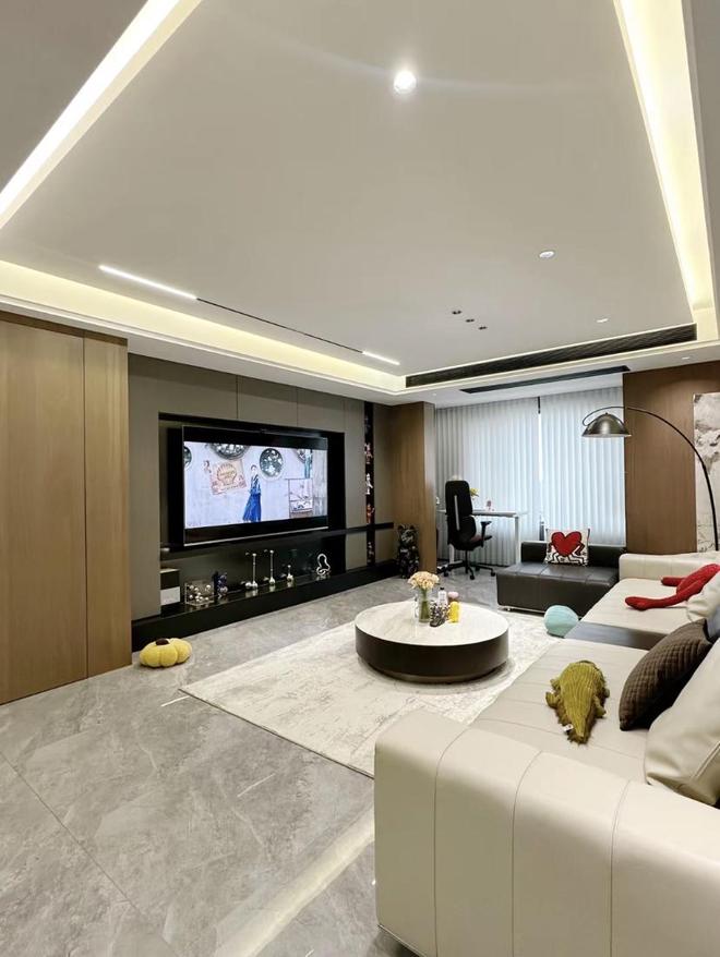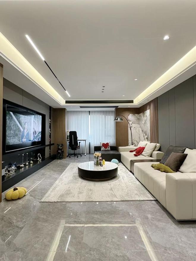 简简单单的电视柜,耐看又百搭,显得家里更大更明亮,收纳空间更充足。悬浮吊顶,中间下吊10cm,色温4000k,无主灯能增加空间灯光的层次感,显得家里明亮又温馨,高级感满满。