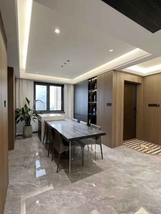 客餐厅、过道、阳台都是瓷砖通铺(瓷砖尺寸: 1500✖️750cm灰色砖),实现一体化的视觉效果,感觉更延伸了。