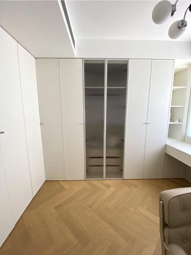 给柜子加入了两扇长虹玻璃的推拉门,可以起到很强的装饰效果,而且玻璃门只有两扇,哪怕是需要将柜子内部收拾得特别整齐,工作量也不是特别大。